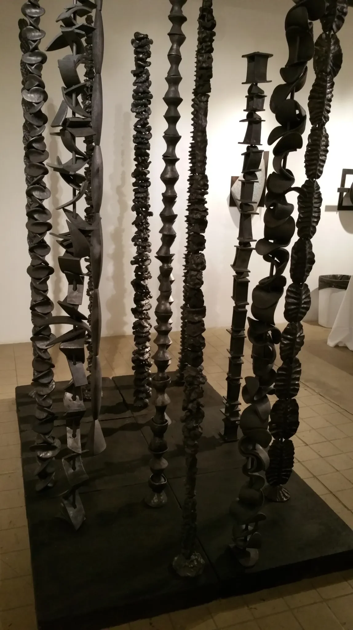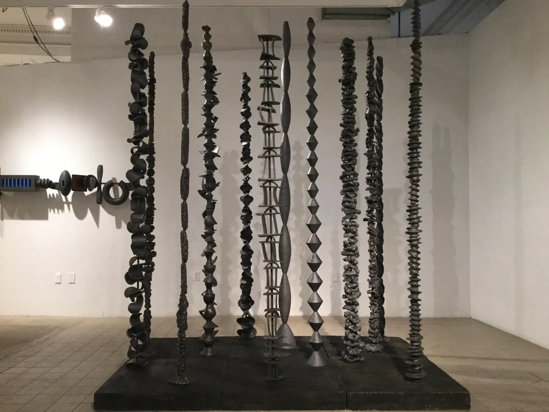 Spirit Poles, 1992, Fired clay, glaze, steel
